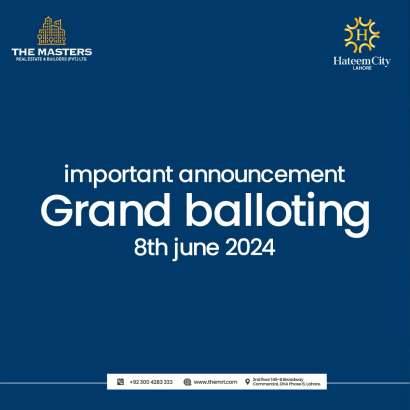 Excitement is in the air as the date for the Grand Balloting of Hateem City Lahore approaches! Scheduled for June 8th, 2024, this highly anticipated event offers prospective homeowners and investors a unique opportunity to secure a spot in one of Lahore’s premier living destinations. Don’t miss your chance to be part of this prestigious community and take the first step toward owning your dream home.
