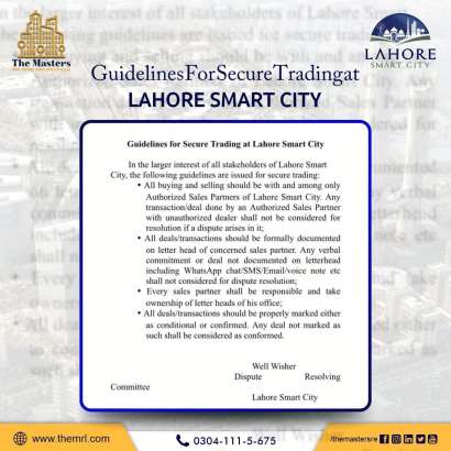 In the larger interest of all stakeholders of Lahore Smart City, the following guidelines are issued for secure trading: